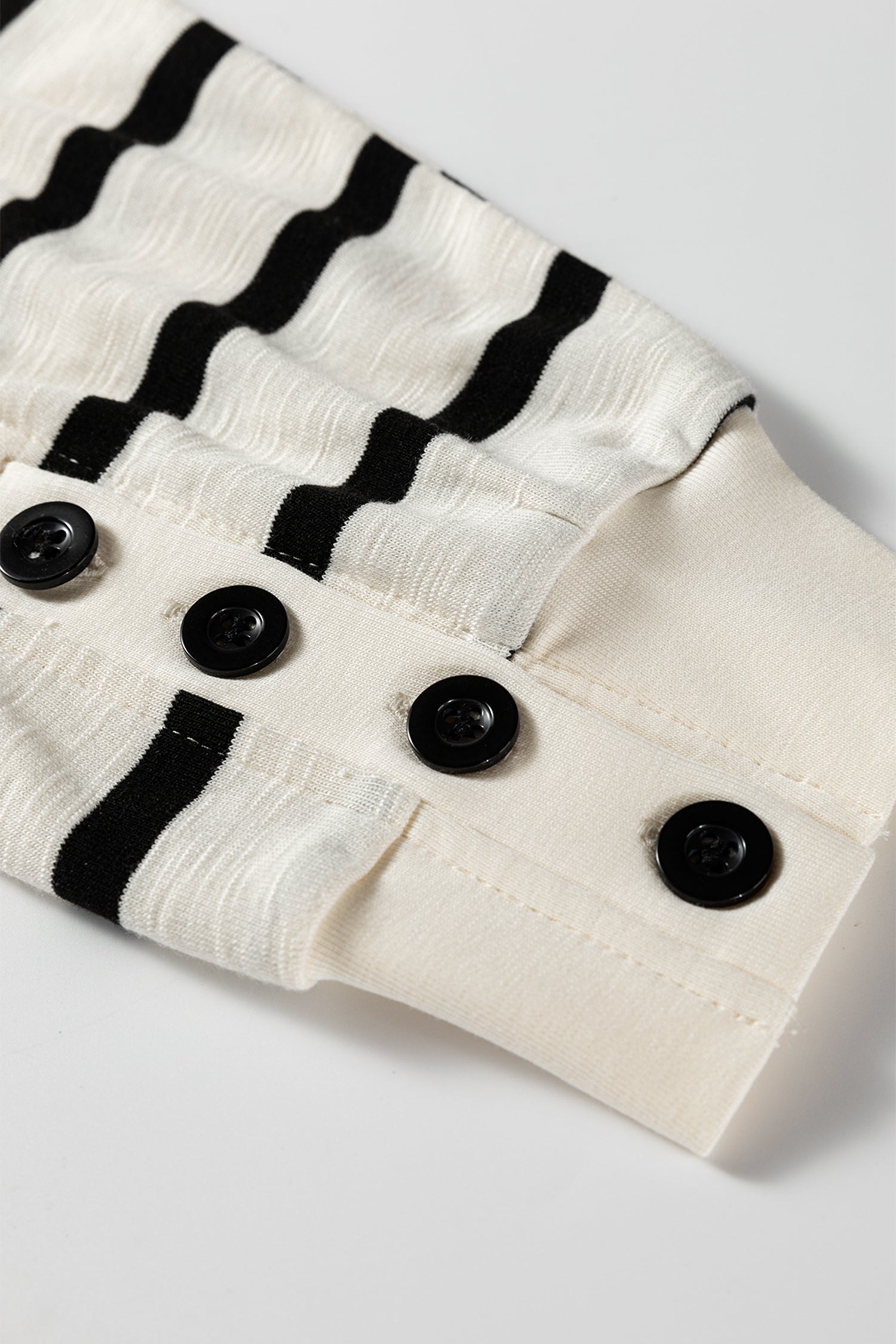 Black Stripe Ribbed Trim Button Cuff Long Sleeve Top Midi Skirt 2pcs Outfit