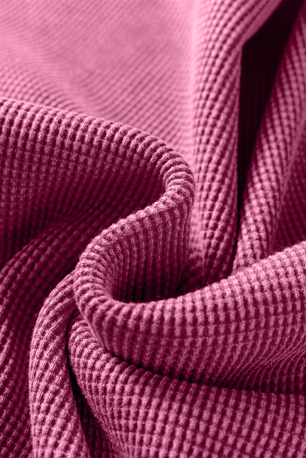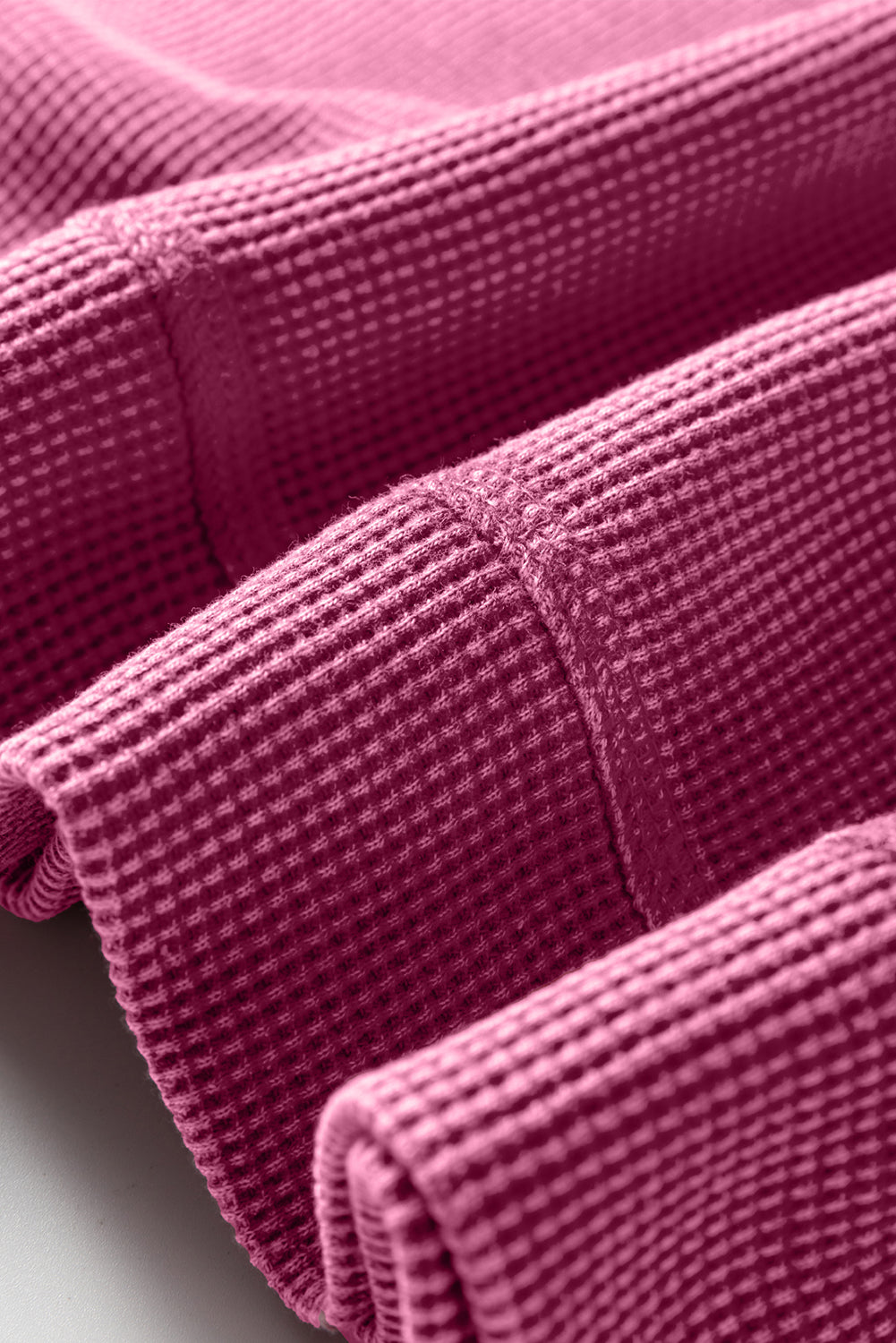 Bright Pink Waffle Knit Patchwork Long Sleeve Loose Top