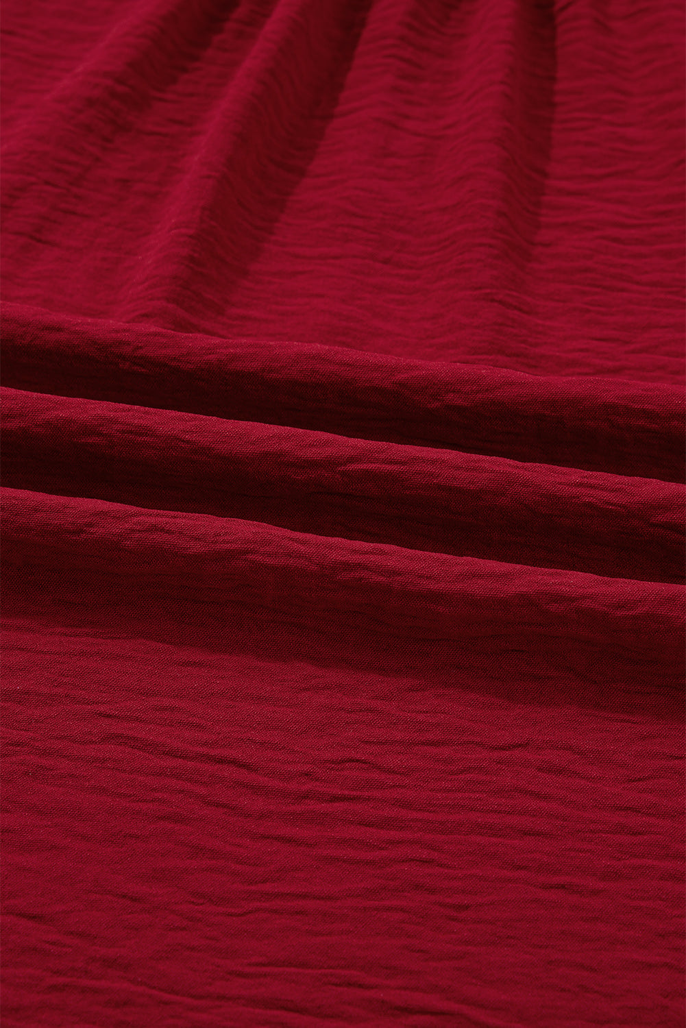 Burgundy Notched Neck Shirred Cuff Long Sleeve Blouse
