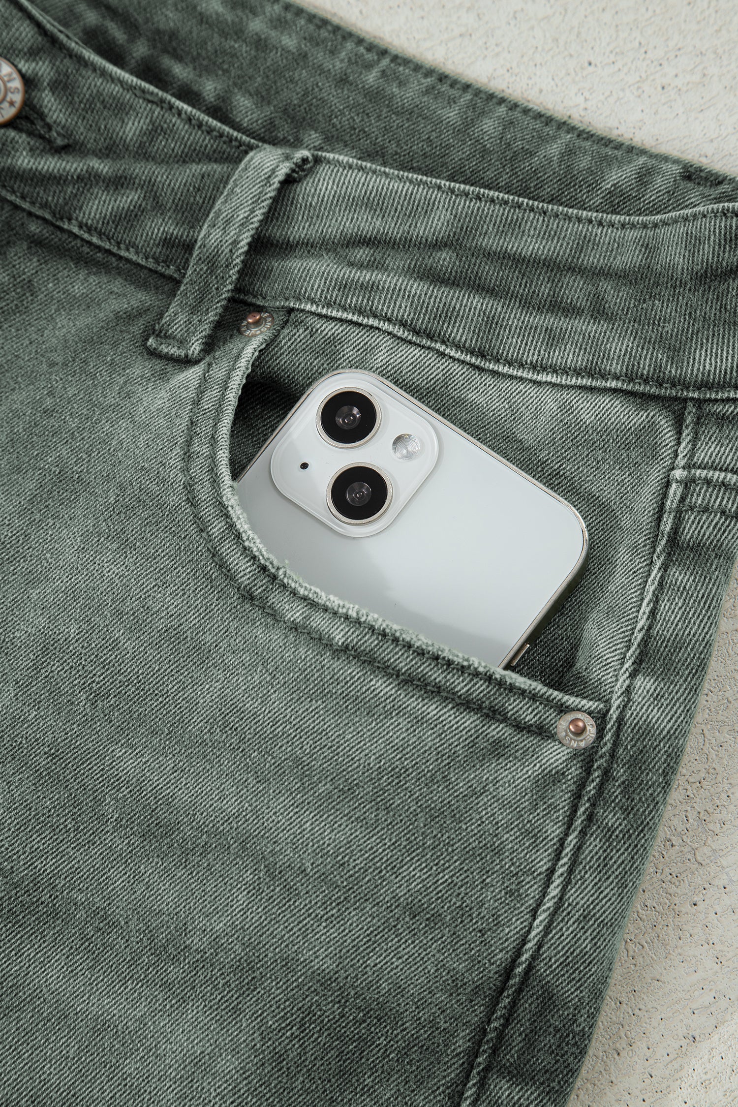 - Slight distressing adds a subtle, edgy detail for casual style.