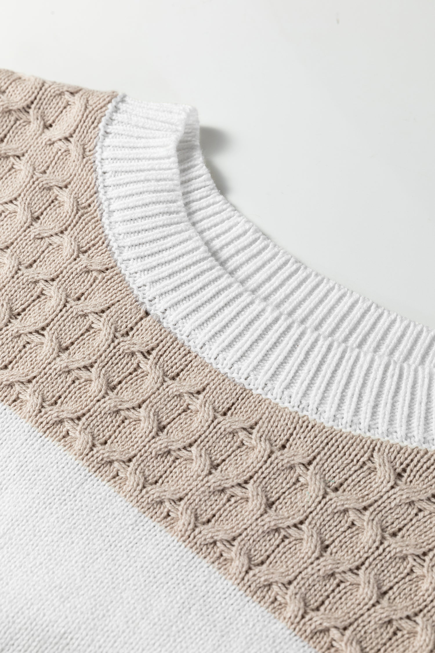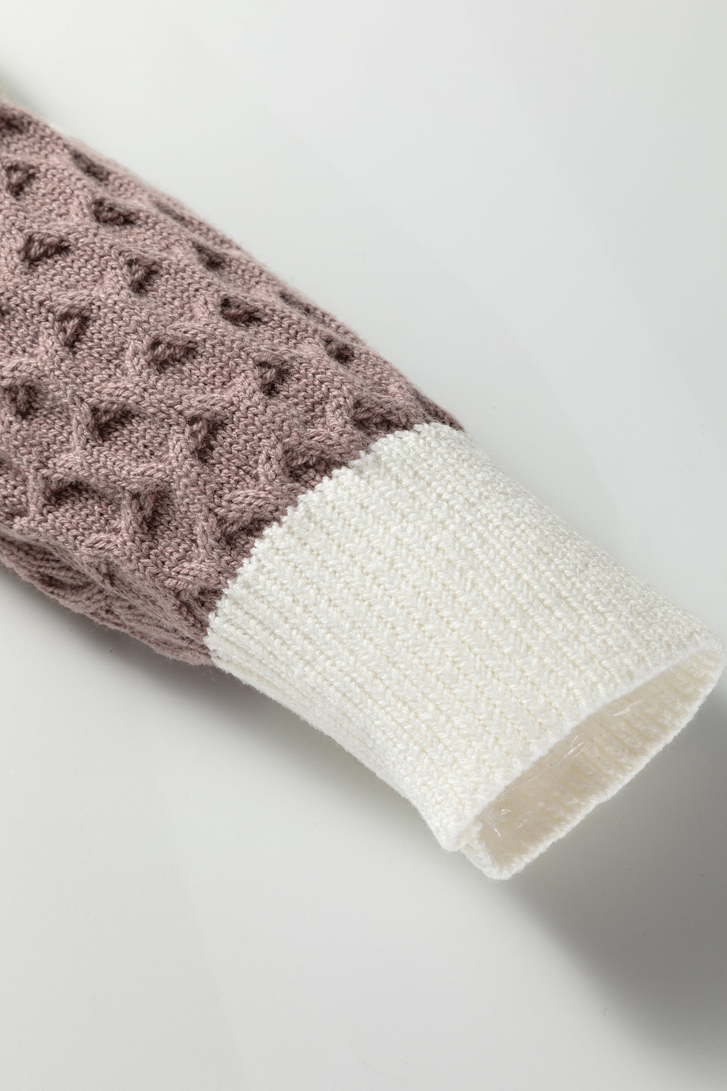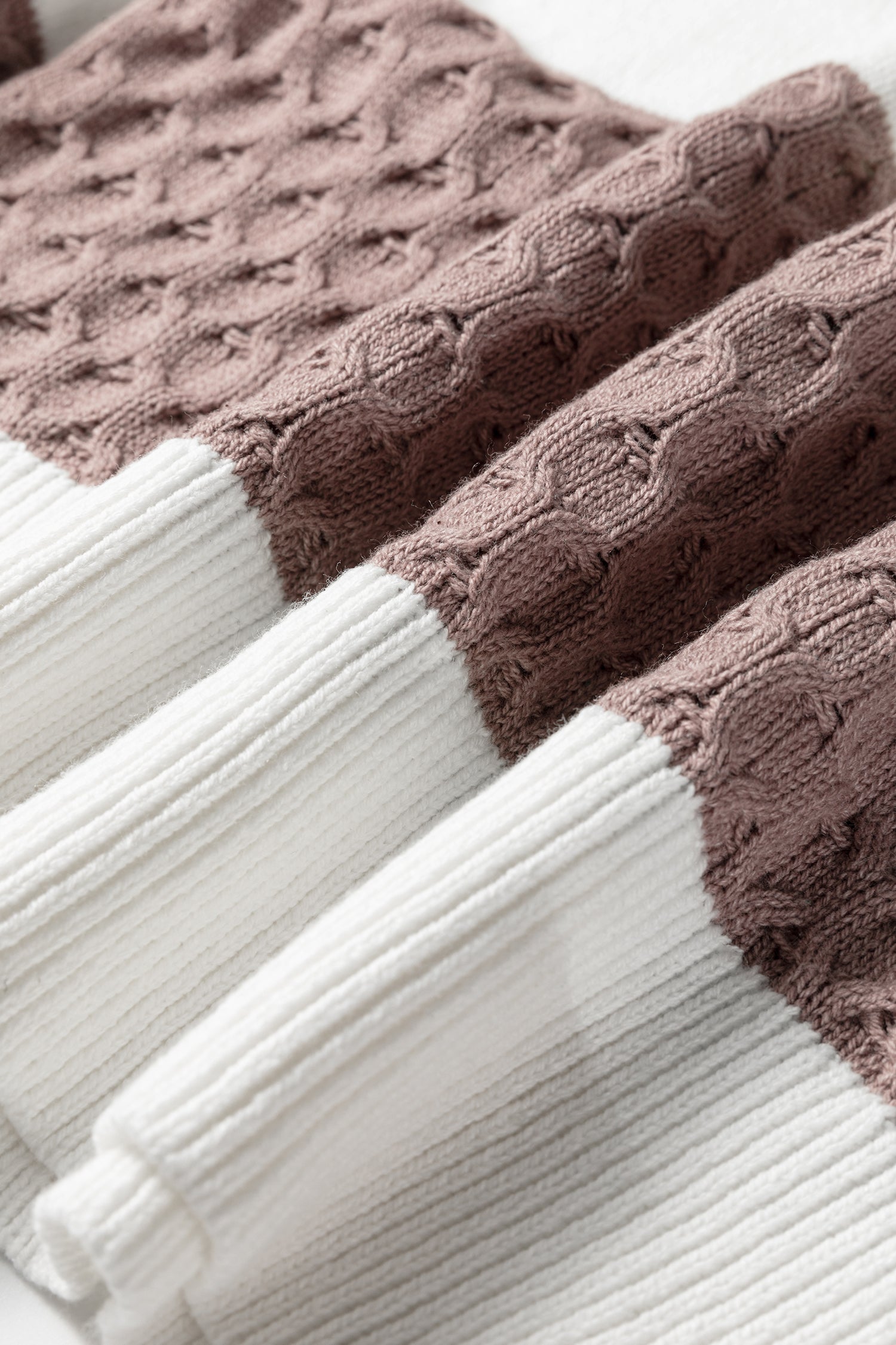 Green Mixed Texture Knit Striped Color Block Loose Sweater
