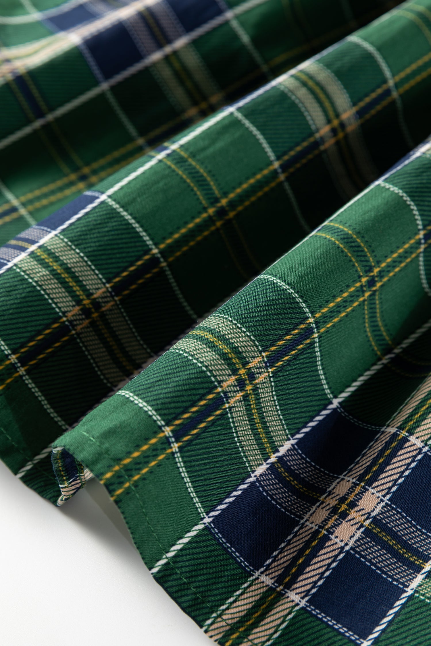 Green Plus Size Plaid Long Sleeve Notched Neck Shift Mini Dress