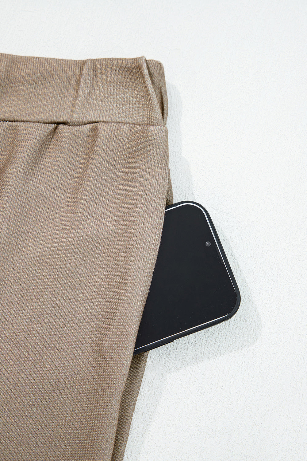 Khaki Retro Star Print Loose Long Sleeve Drawstring Wide Leg 2pcs Lounge Set