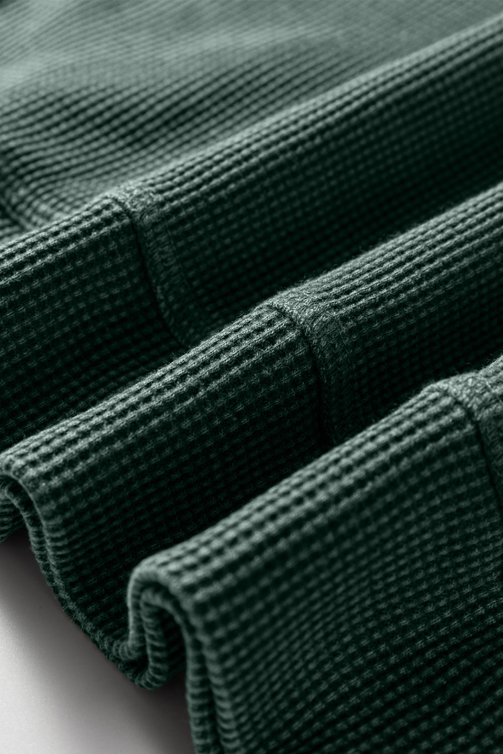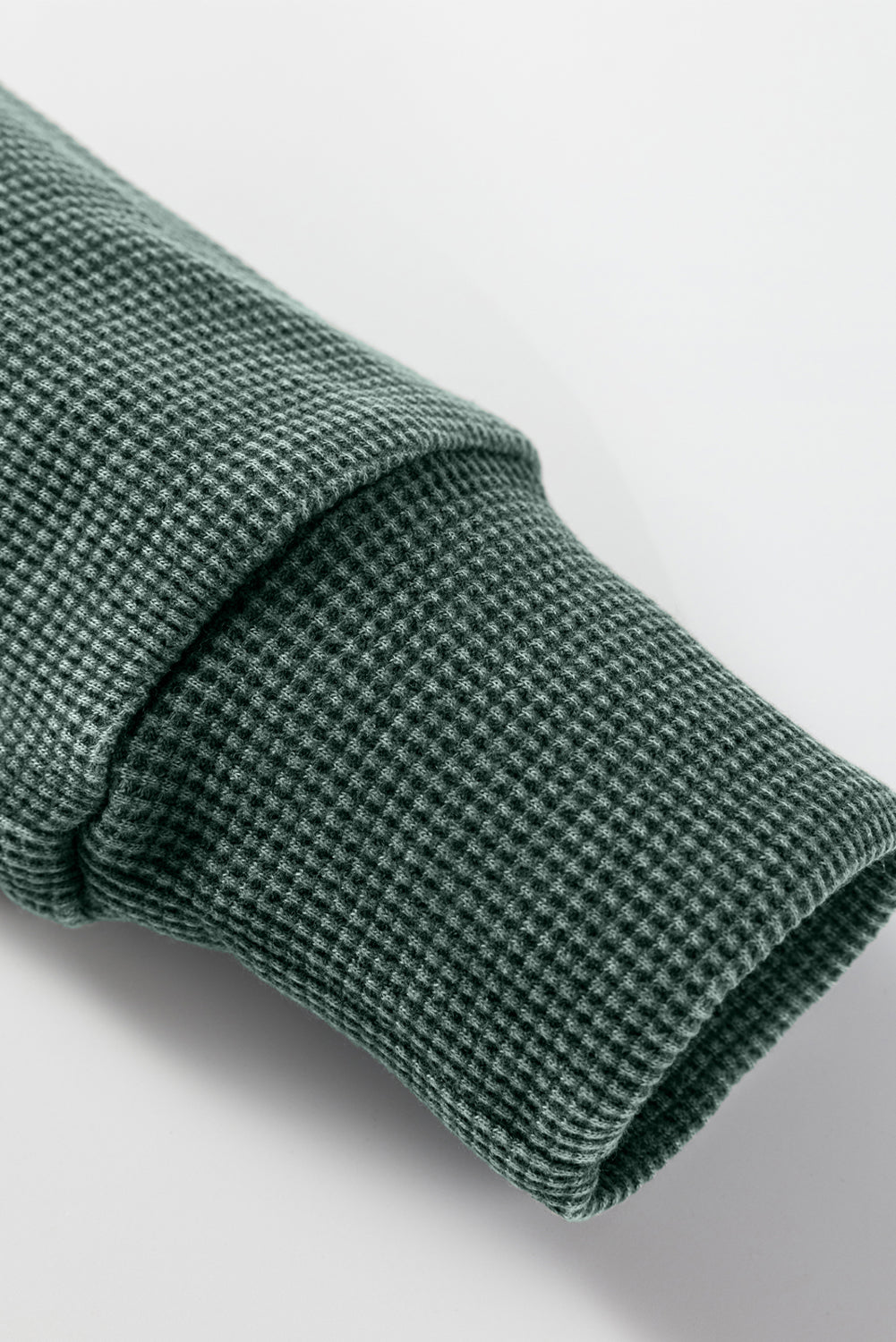 Mist Green Waffle Knit Patchwork Long Sleeve Loose Top
