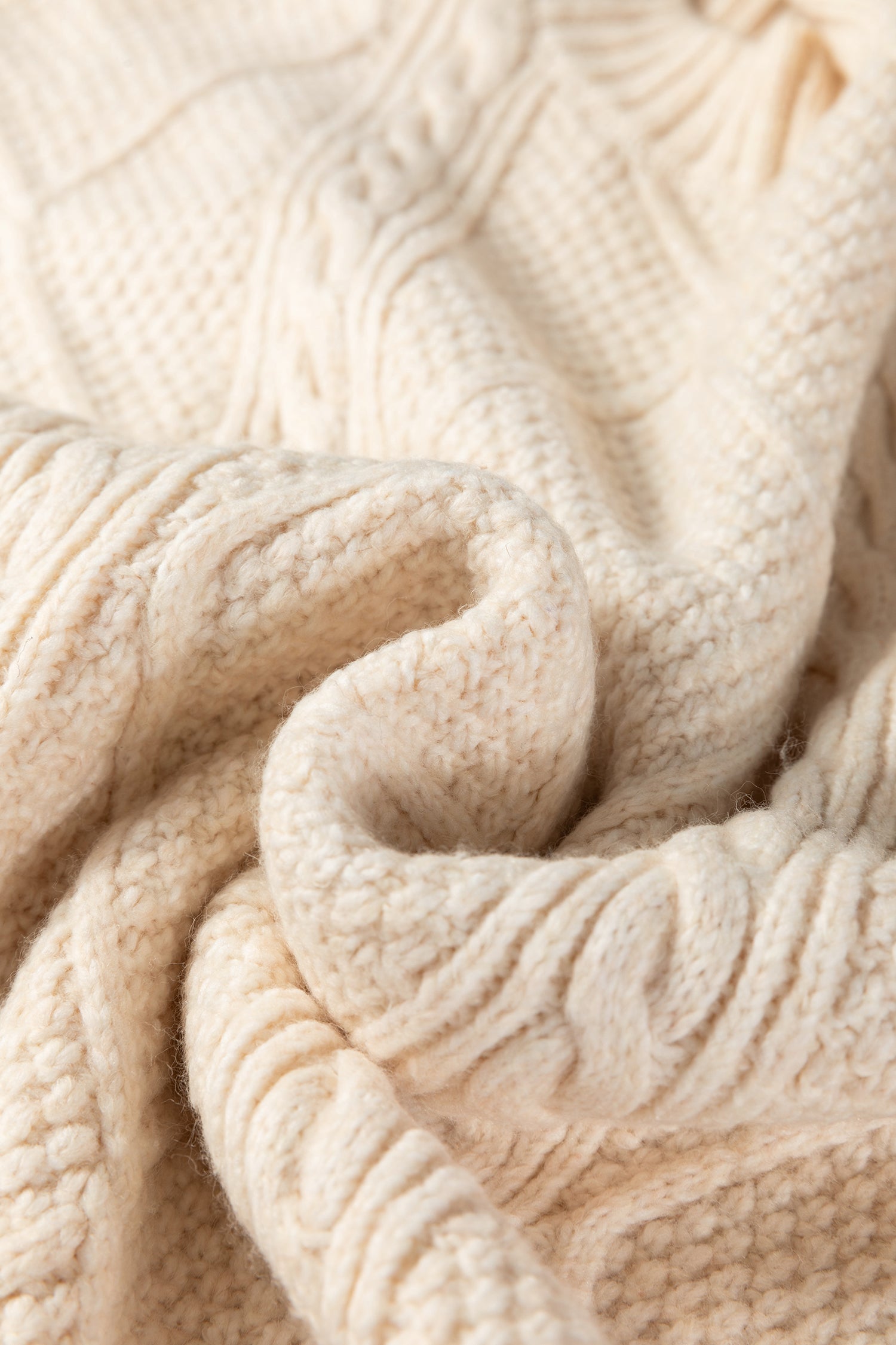 Oatmeal Cable Knit Drop Shoulder Loose Fit Sweater Dress