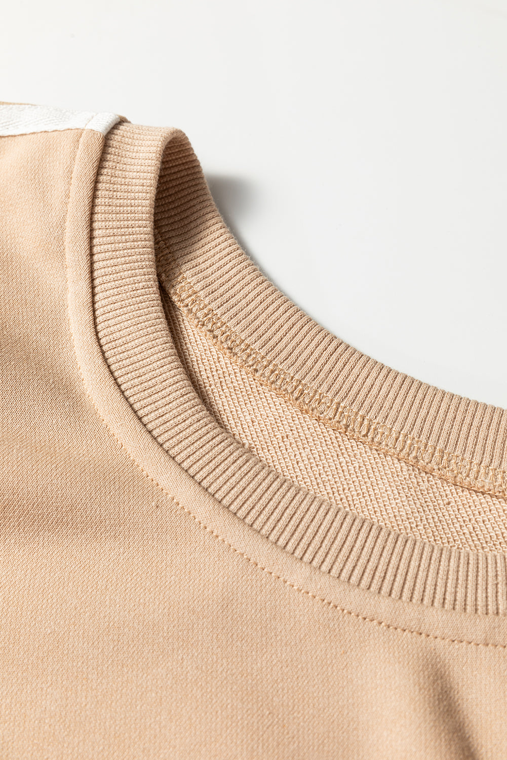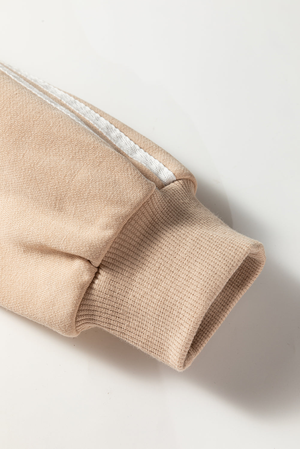 Oatmeal Varsity Striped Detail Crewneck Pullover Elastic Sweatpants 2pcs Outfit