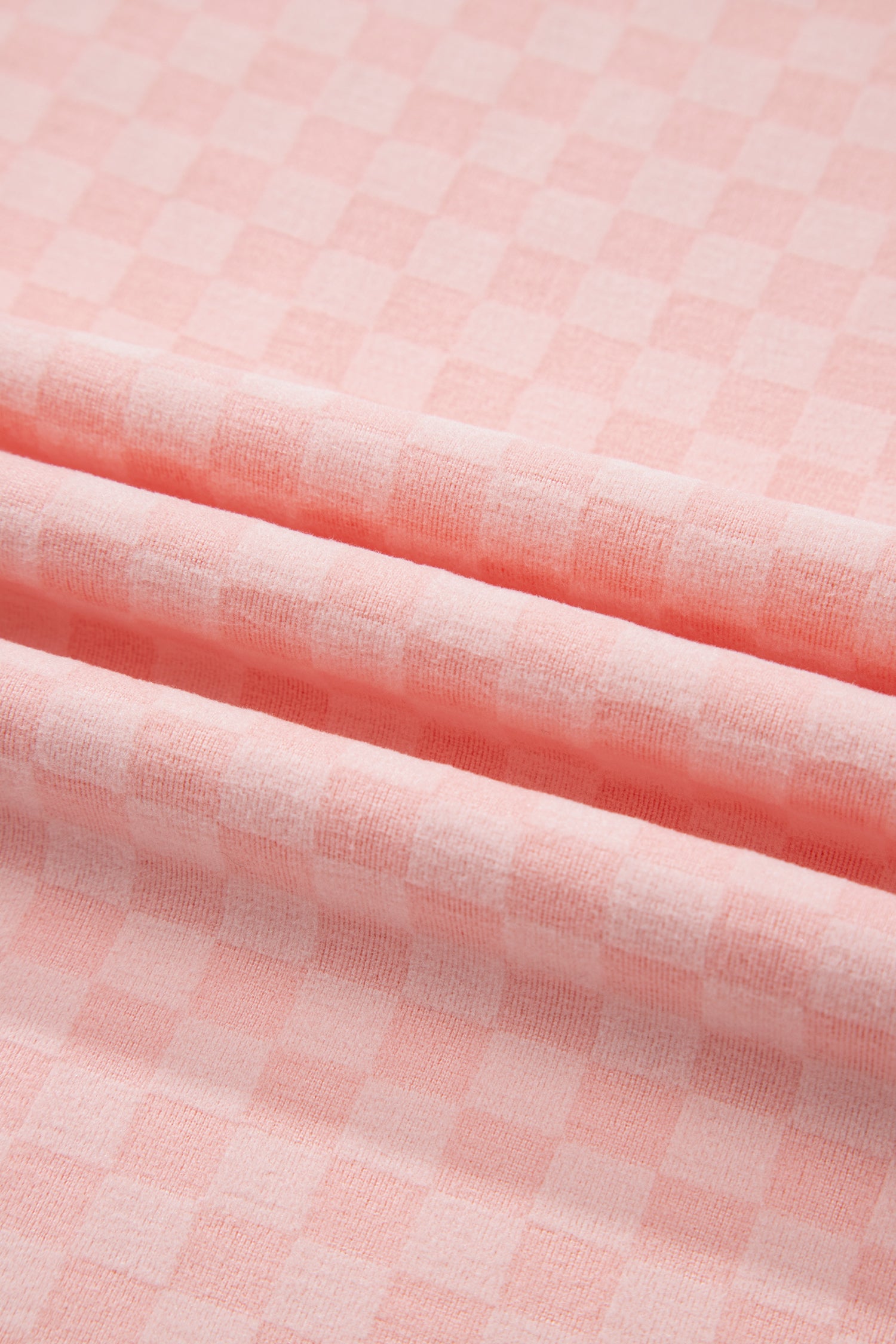 Pink Checkerboard Long Sleeve Pullover and Shorts Set